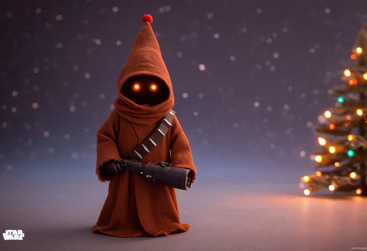 masterpiece, best quality, Jawa, Christmas, santa hat, Christmas lights,