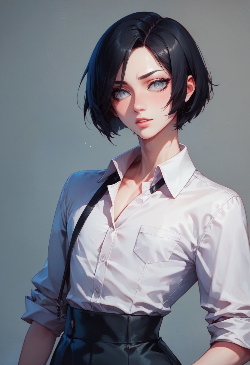 score_9, score_8_up, score_7_up, 1boy, femboy, otoko no ko, short hair, bob cut hair, black hair, grey eyes, gray eyes, feminine face, toned body, Shelly, business attire, highly detailed, intricate, zzCitronCAT, pose, modelshoot