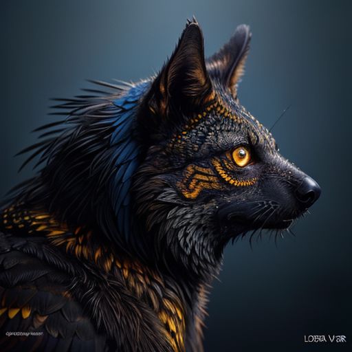 (detailed, masterpiece, intricate) <lora:add_detail:0.8>, a portrait of a bird, extreme detail, patterned fur, glowing yellow eyes, ominous, dark background, torso, head, side view, deep blue backlight, <lora:werewolf_v0.2:1>