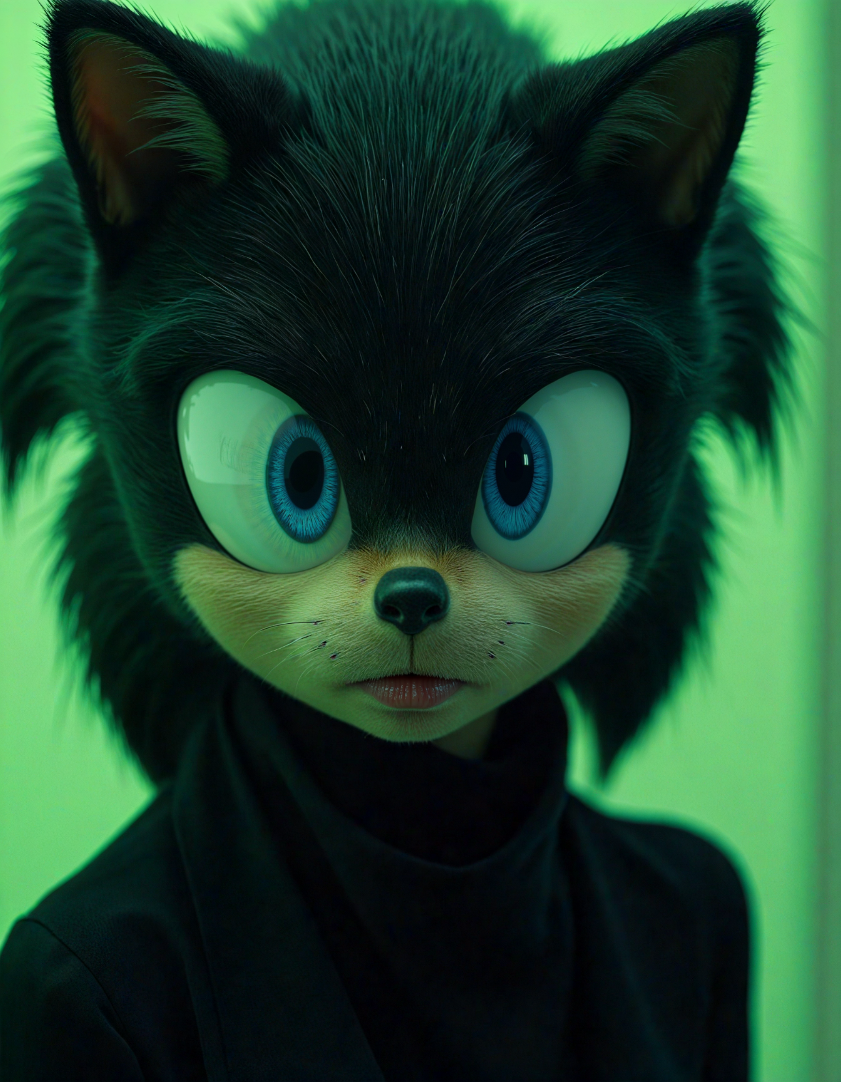 architectural style (dark mood masterpiece Photography:1.2), portrait of a mysterious Sonic the Hedgehog, with blue eyes and dark make up, dark eyeliner, she has sensuous lips, looking seductively, naughty. The extreme realism focuses on her detailed skin, showing fine textures and natural highlights. photography masterpiece, modern, irresistible beauty, fuzzy lighting, dark mood, unusual composition, use of negative space, (rule of thirds composition), simmetry, mysterious, emotional, flirting, groundbreaking unrivaled opus with unrivaled details, (Spring Green color scheme), highly detailed, melancholic, low-light hyper detailed photography, catchlights, extremely high-resolution details, photographic, realism pushed to extreme, fine texture, incredibly lifelike, hip level shot,style by luis royo . clean lines, geometric shapes, minimalist, modern, architectural drawing, highly detailed