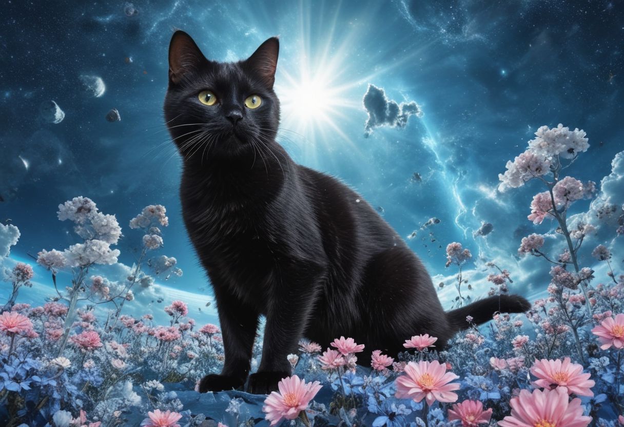 (A smiling black cat in space) ,analog photo, full body,, tall height, rodian alien Snorkeling ,alien planet,(sci-fi:1.5), spaceship, mineralogical fractal, mutation spring petals, photorealistic surrealism abstract collage,(masterpiece, high quality) blue sky, epic clouds, spring background, god rays, dramatic light, masterwork with superior details,