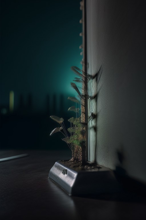 Generate a surreal image of an abstract and mechanical garden, where metallic flowers adorned with gears serve as petals and robotic vines climb imaginary structures. futurist, Ultra High Definition, Impeccable Detail, Premier Quality, Best-in-class, (Photorealistic), (Lifelike), Top quality, score_9, score_8_up, score_7_up, score_6_up, score_5_up, score_4_up, perfect shadows, perfect lighting, night, backlighting, Cinematic, dark moody lighting, film grain, mysterious atmosphere, storytelling,