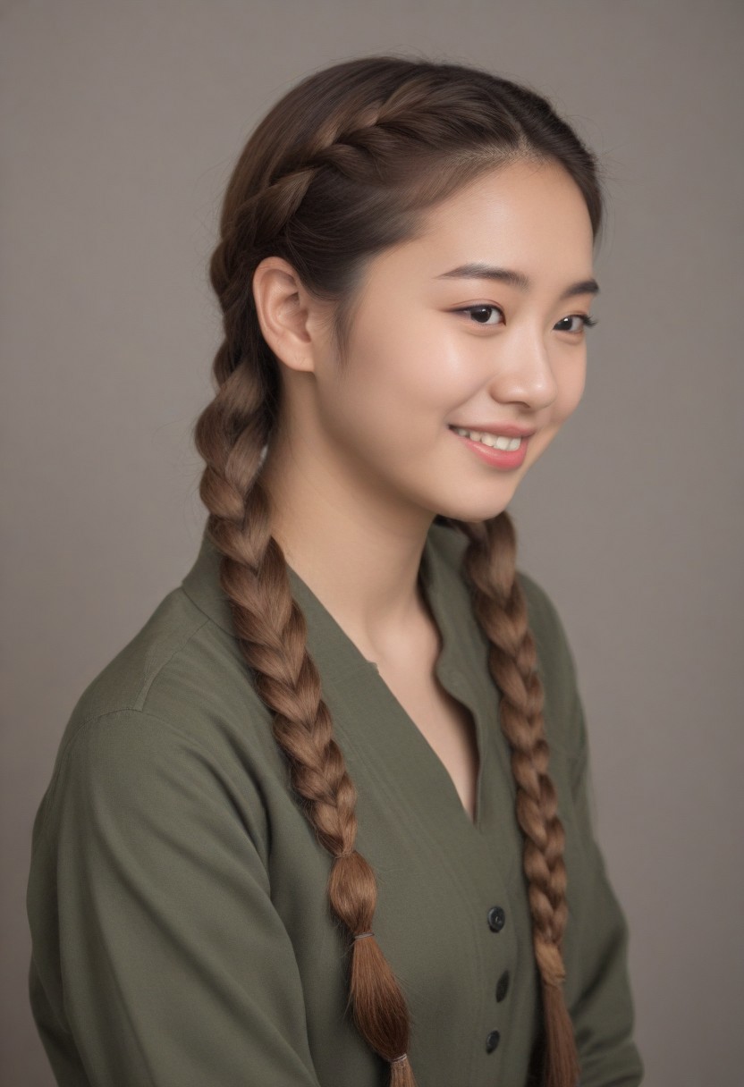sexy, smiling 20yo girl from Korea as an assassin braided hair