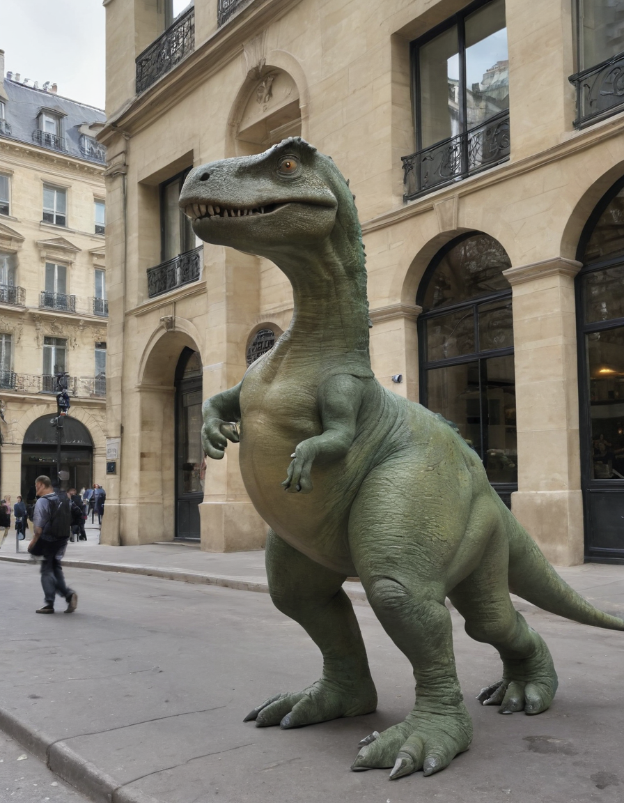 <lora:sdxl_lightning_4step_lora:1>flux, dinosaurs in Paris