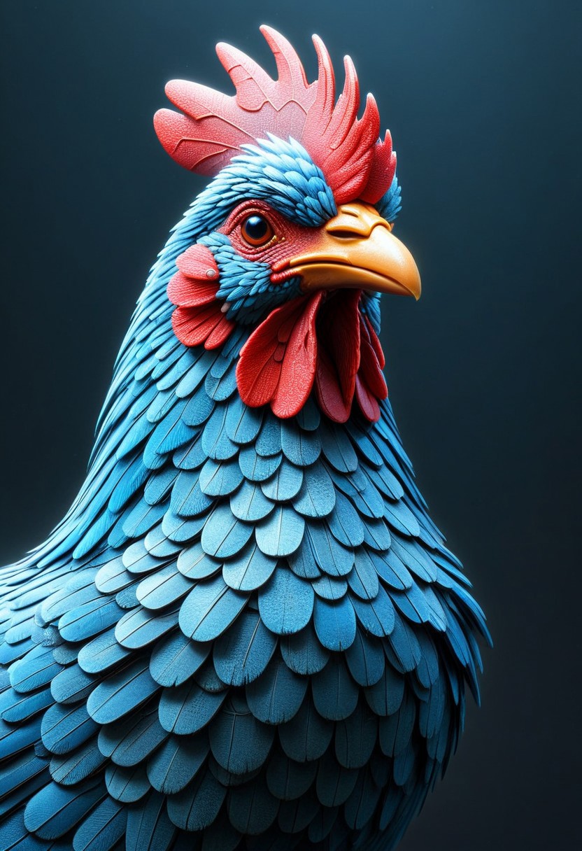 Glossy blue rooster. It has a forked tongue. digital, atmospheric, characters, eeriness, illustration, elegant, concept-art, awesome full color, fantasy, epic, majestic, magical, dreamy, perspective, light and shadow, moody, epic, beautiful, painterly, aesthetic, textural, vivid, vibrant, intricate details, highly detailed, ultra-detailed, absurdres, mad-shingles