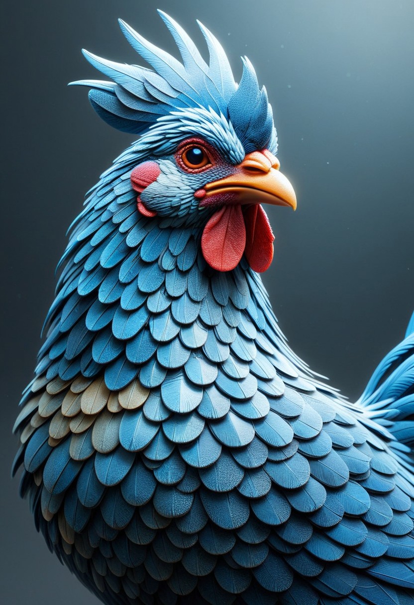 Glossy blue rooster. It has a forked tongue. digital, atmospheric, characters, eeriness, illustration, elegant, concept-art, awesome full color, fantasy, epic, majestic, magical, dreamy, perspective, light and shadow, moody, epic, beautiful, painterly, aesthetic, textural, vivid, vibrant, intricate details, highly detailed, ultra-detailed, absurdres, mad-shingles