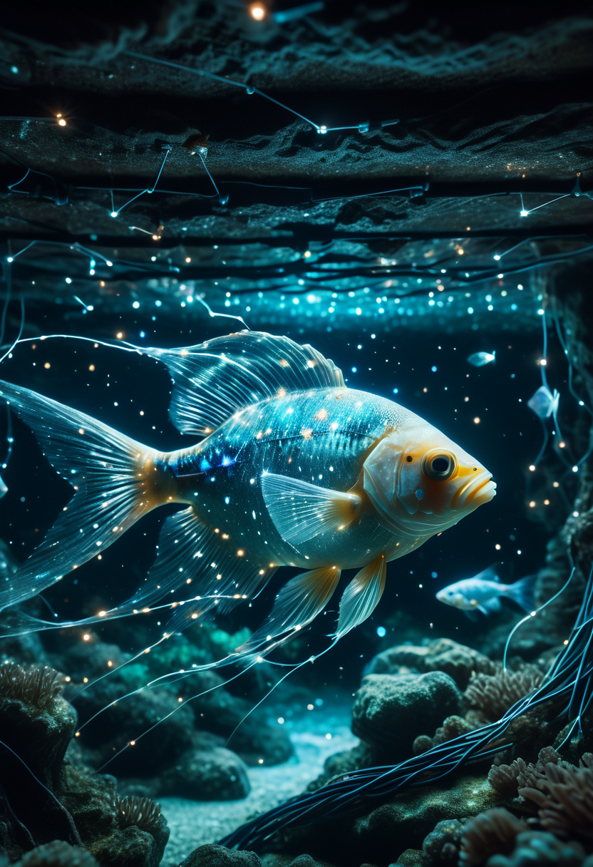score_9, score_8_up, score_7_up, ultra details, high details, absurdres, masterpiece, best quality, 2k, 4k, very aesthetic, A high fantasy 135mm cartoonish face-focus shot of Fish, set in A colossal underground cavern glowing with bioluminescent fungi, a dynamic dying pose and an serious expression. The scene is illuminated by Dreamy pastel lighting, enhancing the dynamic atmosphere. Electric arcs dancing along exposed wires. The details are ultra-HD, with stunning textures, lifelike depth, and 8k quality. Every element is meticulously crafted, captures the essence of the motif in breathtaking resolution. (starry_morph:1.2), <lora:Starry_Morph_PonyXL:1.1>, <lora:add-detail-xl:1>, <lora:JuggerCineXL2:1>,