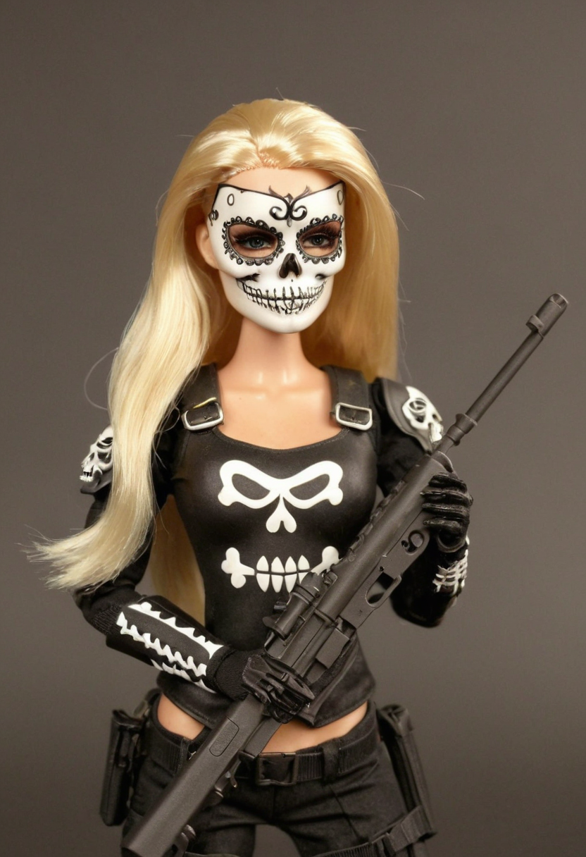 D34THSQU4D, blonde barbie, cute, girly, skull mask, armor, army, holding weapon