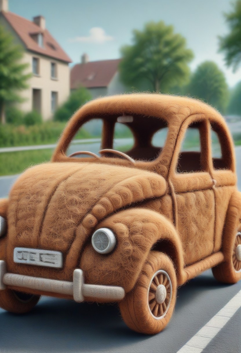Citroen 2cv cocomat car, full of cheerful colors, street, countryside, sunshine. (masterpiece, intricate:1.3), (best quality, hires textures, high detail:1.2), (4k),(incredibly detailed:1.4),