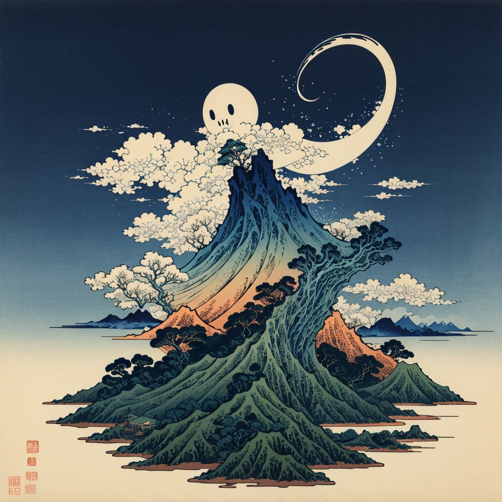 (masterpiece, top quality, best quality, official art, beautiful and aesthetic:1.2), a ghost, 葛飾 北斎, katsushikahokusai, <lora:KatsushikaHokusai:0.5>