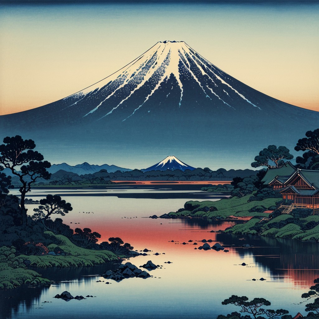 (masterpiece, top quality, best quality, official art, beautiful and aesthetic:1.2), Mount Fuji, 葛飾 北斎, katsushikahokusai, <lora:KatsushikaHokusai:0.5>