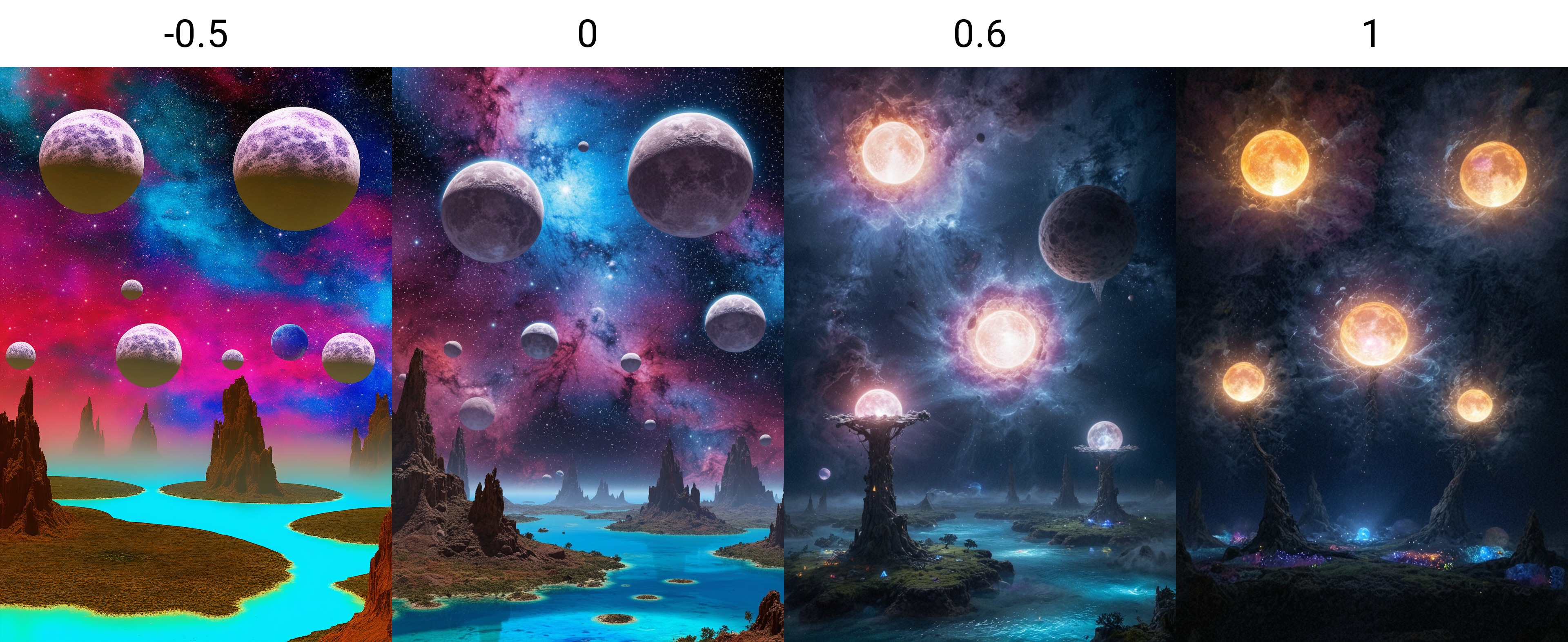 Surreal dreamscape, floating islands, giant moons, colorful nebulae, fantasy ambiance <lora:dark-experiment-fp8:-0.5>