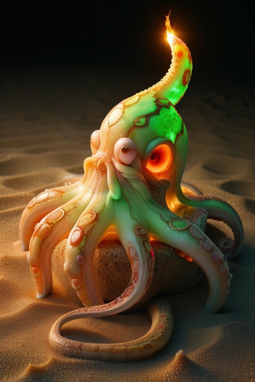masterpiece, best quality, amazing quality, detailed, 3d, ((octopus, snake)) Skull made of wax, swirling sand, lava, internal glow, DonM3lv3s