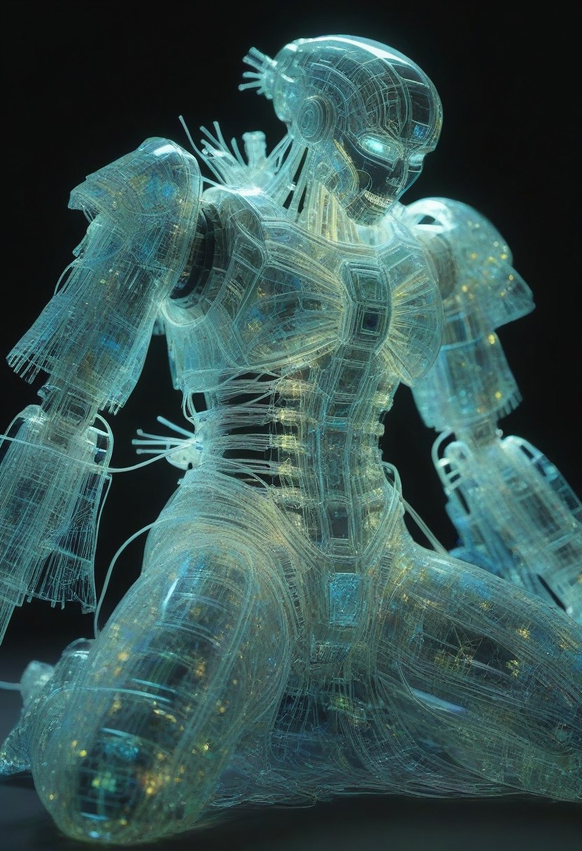 <lora:World_of_Glass_Filament:0.6> made of,car neon (glass:1.1) circuit filaments, w0gf1l,, with robotic parts, in flowery kimono, Intricate details, 8 k, cinematic <lora:sss:0.8> subsurface scattering, sss <lora:envyStarlight_v10:0.8>