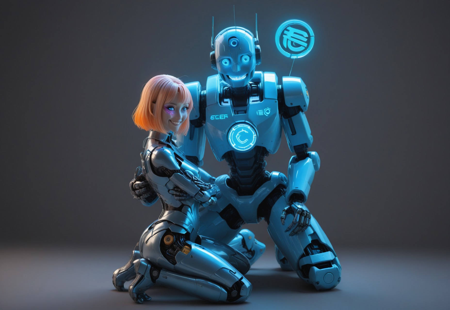 3characters, best quality, good quality, very awa, very aesthetic, absurdres, newest, group, group shot, expressing love, hugging, CivBot, CivChan and civitchan holding together, 3 people hugging together, 2girls, and 1robot, (Ombre color scheme of neon blue,neon light orange ,neon orange ) made of, tiny neon glass filaments, w0gf1l:0.81, Manga style, detailed hyperrealism, full-body automaton (CivBot, blue robot), Civitai Logo medallion, head tilted, very high contrast, overhead lighting, 3D rendering, 4, smiling, holographic text:"BUZZ" coins floating around, First character : CivChan, purple eyes, pink hair, short hair, Second character : CivBot, civitchan, blue yes, black long hair, Third character : android, bot, Background:cyber bedroom,