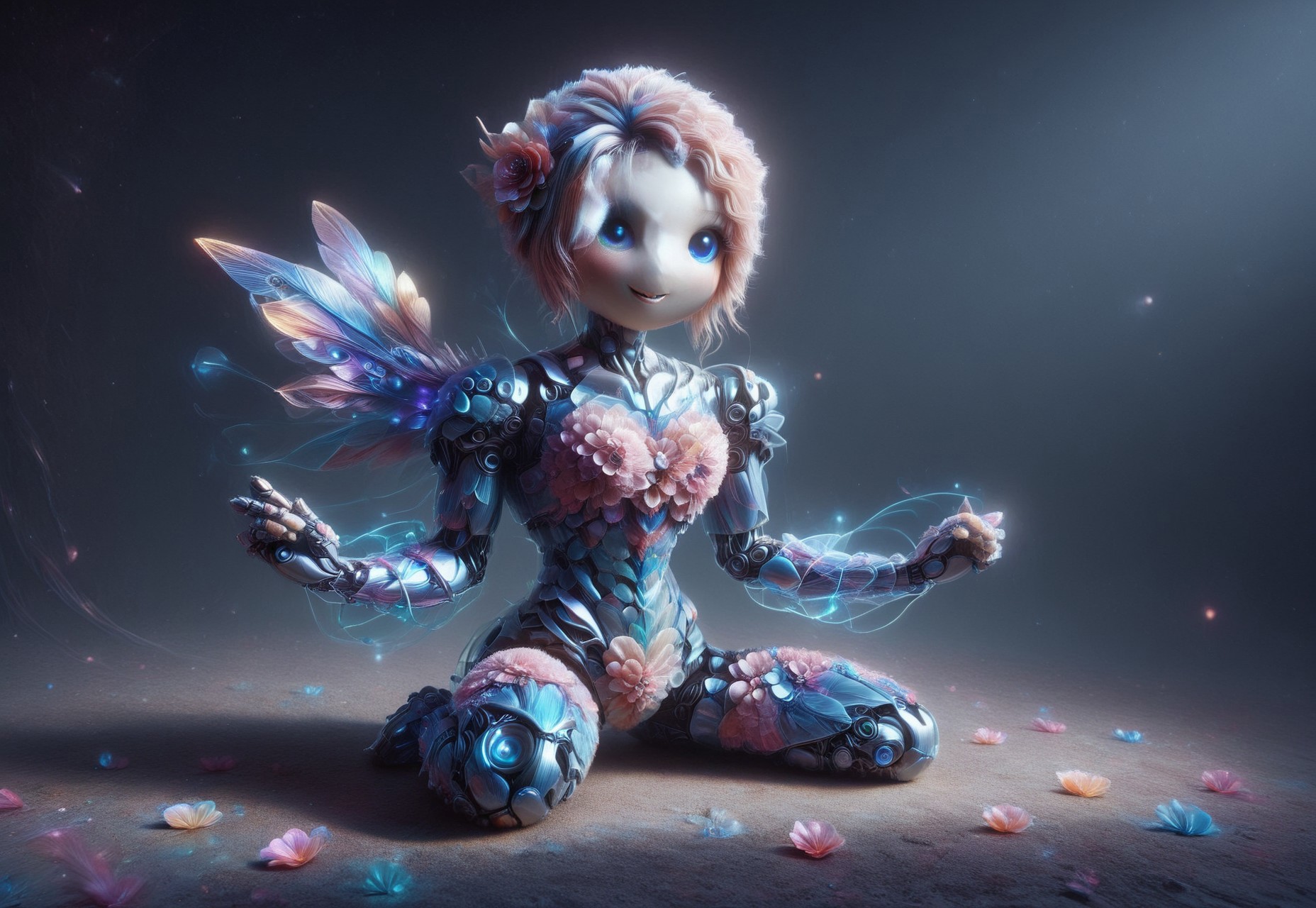 2girls, and 1robot palying together, (3 differents characters:1.5), best quality, good quality, very awa, very aesthetic, absurdres, newest, group, group shot, expressing fun, :], CivBot, CivChan and civitchan playing together, 3 people playing together, 2girls, and 1robot, (Ombre color scheme of neon blue,neon light orange ,neon orange ) made of, tiny neon glass filaments, w0gf1l:0.81, Manga style, detailed hyperrealism, full-body automaton (CivBot, blue robot), Civitai Logo medallion, head tilted, very high contrast, overhead lighting, 3D rendering, 4, smiling, First character : CivChan, purple eyes, pink hair made of filaments, short hair, made of ral-smlvltnpls, Second character : CivBot, civitchan, blue yes, black long hair made of filaments, body made of filaments, made of ral-smlvltnpls, Third character : android, bot, made of ral-smlvltnpls, Background:cyber bedroom, p1nk1r1fl0wers, wild jungle made out of iridescent flower petals,