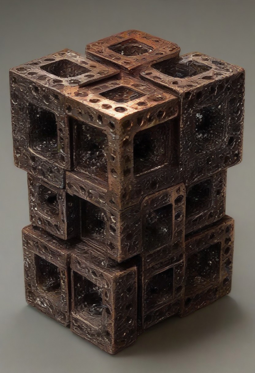 Absolutely rusted iron menger cube but made of polished Polish methane lakes pouring into titanium tesseracts
