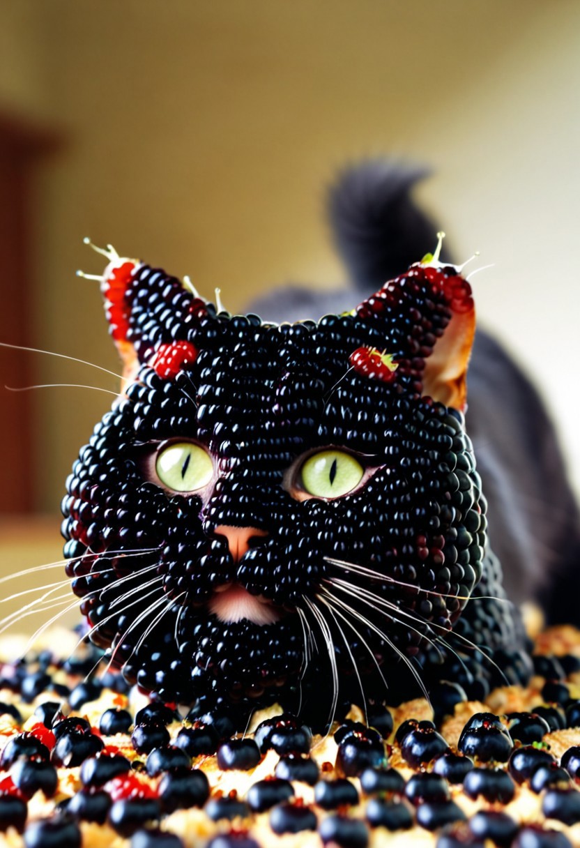 masterpiece, best quality, amazing quality, very aesthetic, dynamic angle, face focus, cat, blackberryworld, depth of field,<lora:sdxl\food\Blackberryworld_Morth.safetensors:1.0:1.0>
