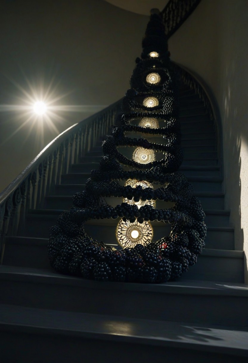 masterpiece, 4k, ray tracing, intricate details, highly-detailed, hyper-realistic, 8k RAW Editorial Photo. blackberryworld sun, spiral staircase, occult, ,cinematic light, dramatic light, shallow depth of field, high budget, bokeh, cinemascope