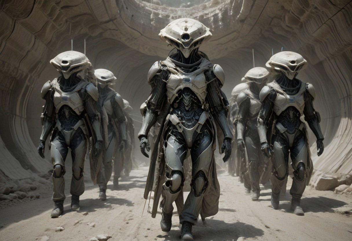 ((marching)), three quarters view, Stone catacombs in an alien world . Alien stone military tank, fissures on skin ((((Full body portrait))))