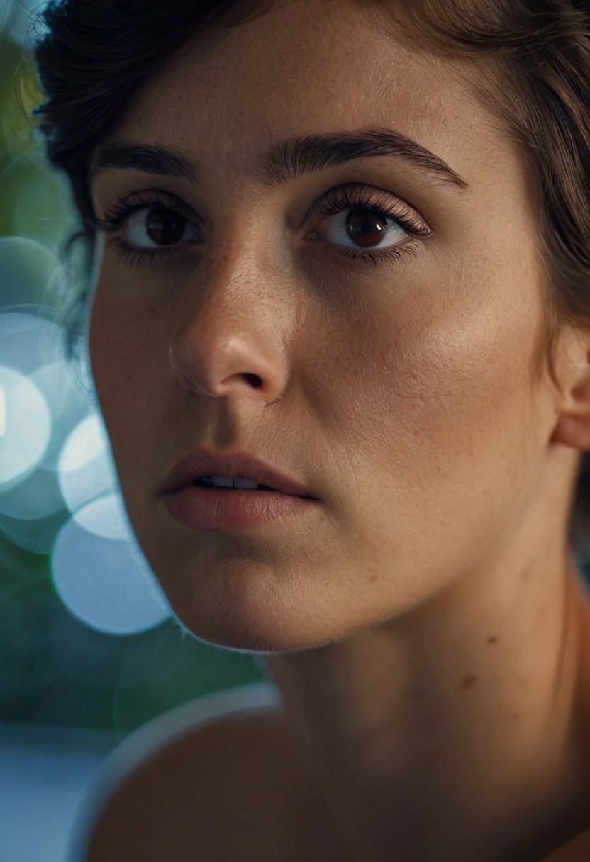(masterpiece:1.5), best quality, amazing quality, very aesthetic, absurdres, newest, 8K, cinematic film still (Peripheral Visions:1.65), (art by Jean-Baptiste Huynh:1.6), (Lustful:1.5) A detailed Masterpiece, dynamic composition, portrait, (((shoulder and face visible:1.3))),(dutch angle:1.3),closed mouth:1.5,tears, sad natural amateur girl,18 years old,(((average girl:1.2))), hazel hair, pixie haircut, brown eyes, ,(perfect-eyes-details),(perfect-mouth-details),(ultra realistic black eyes),(ultra realistic mouth), (((saddest girl ever:1.6))) Highly Detailed, (Photorealism:1.3), detailed eyes, perfect eyes, cinematic lighting, Ektachrome, DOF, Shallow Focus, Retro-modern, Vintage-inspired with contemporary touches,bokeh:1.2, blurry background:0.8. breathtaking, Masterpiece RAW photo of the most realistic photorealistic photo ever taken, shallow depth of field, vignette, highly detailed, high budget Hollywood film, bokeh, cinemascope, moody, epic, gorgeous, film grain,