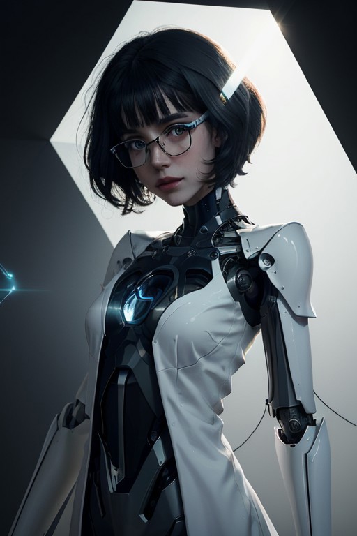 A black frame, in the center a keyhole through which the room is visible (a quantum luminous supercomputer with a mechanical manipulator in the form of a robotic arm, this hand is shaken by a joyful girl in a short white coat and glasses and short dark hair in the style of a square).... .. . The background is minimalist, a gradient of shadowy blue tones, amplifying the ethereal and futuristic ambiance of the scene. . A palpable sense of pure, overwhelming ecstasy and otherworldly emotion is expressed through a psychedelic, repeating, anaglyph chromashift glitch effect. The entire composition reverberates with a feeling of digital decay and rebirth, as if trapped inside an ancient portal observed through a game camera lens.. ., .. (Depth of field), . An otherworldly atmosphere. (Depth of field), low saturation, detail. mythical, stylish, charismatic. , , masterpiece, ,Image quality, , CPA, UNI_SCI_FI_CORE. with yellow rays of sunlight piercing through the misty atmosphere. masterpiece. An otherworldly atmosphere, Mysticism. mythp0rt, UNI_SCI_FI_CORE. (Depth of field),detail. Stylish, charismatic. Otherworldly atmosphere. aidmamj6.1 detail. mythp0rt, Stylish, charismatic.c.