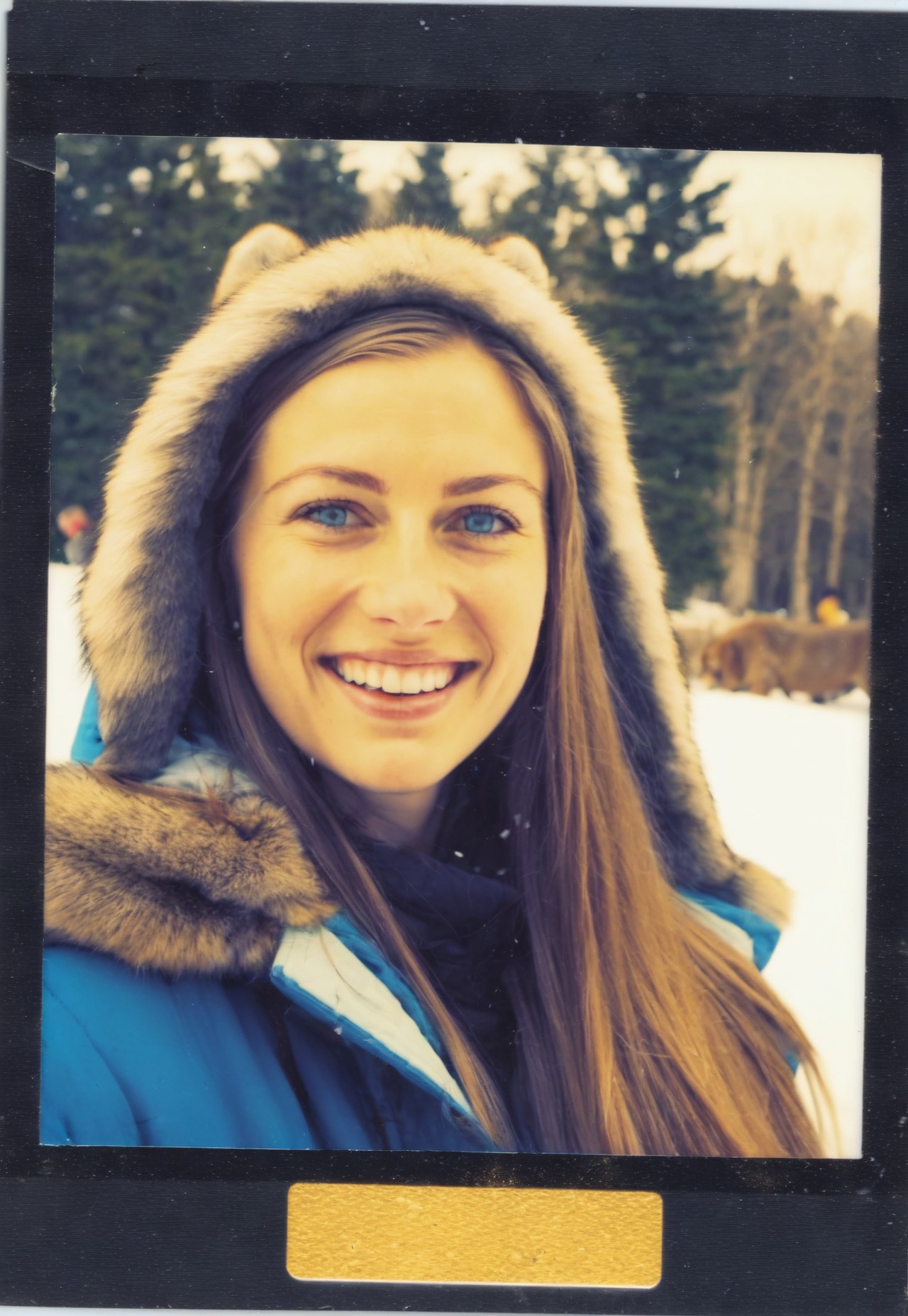 polaroid picture,frames picture, caught in the act laughing, amateur analog photo, candid photo, Authentic share, amateur quality phone photo in bad resolution, beautiful,grainy picture, faded colors, underexposed picture,polaroid photo, grainy, amateur photo a crooked thumbtack holds the top of the photo, dog-eared photo, 1 swedish girl,3/4 front:1.3, portrait, pale skin:0.2, straight long hair,classical straight haircut, stunning beautiful face, model face, realistic skin, ((realistic bright blue eyes)), fur hood on head, outdoor, parc,snowy day,golden hour, blury people in foreground, speed effect on people