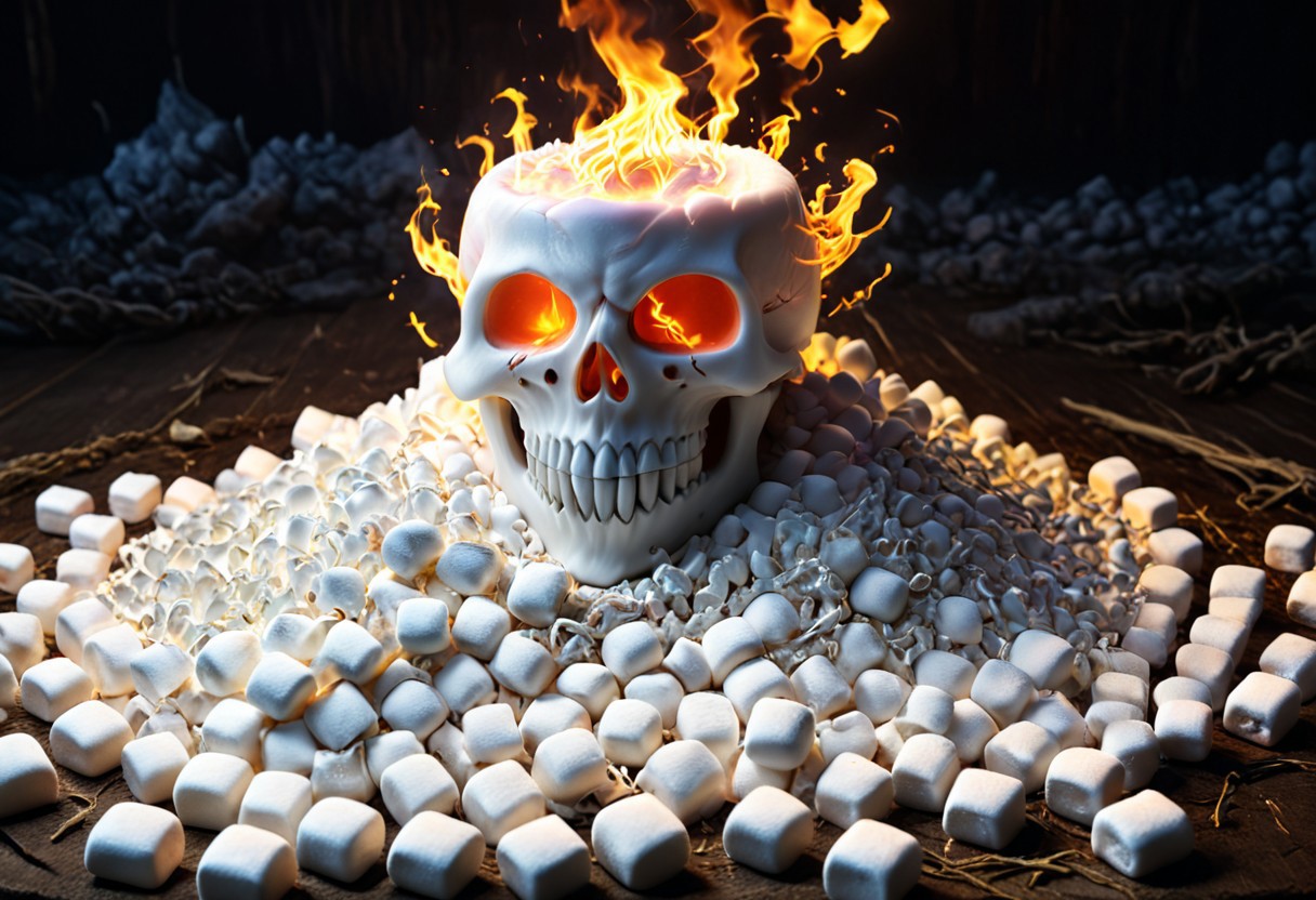SFW, PG-Rating, high detail, high quality, dramatic lighting, cinematic lighting, detailed background, masterpiece, detailed masterpiece, best quality, Graphic details, perfect design, the softest marshmallow Demon skull