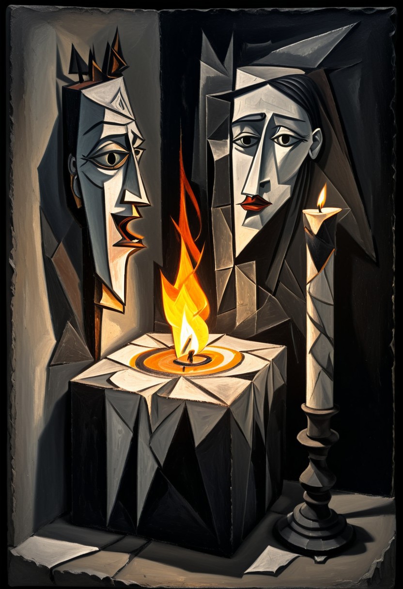 HavvoricFireDarkstyle lit candle, Guernica, painting by Pablo Picasso, cubist painting
