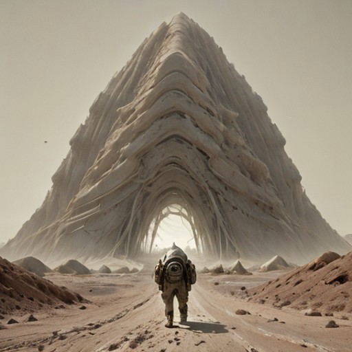 JJ Abrams style, giant sand worm, sand worm as big as a sky scrapper, sand worm blasting out of the ground, Alien like structures in the background, organic alien structures in the background, artillery fire, soldiers taking cover, explosions in the background, Battlefield, war on desert rocky planet, fissures on skin