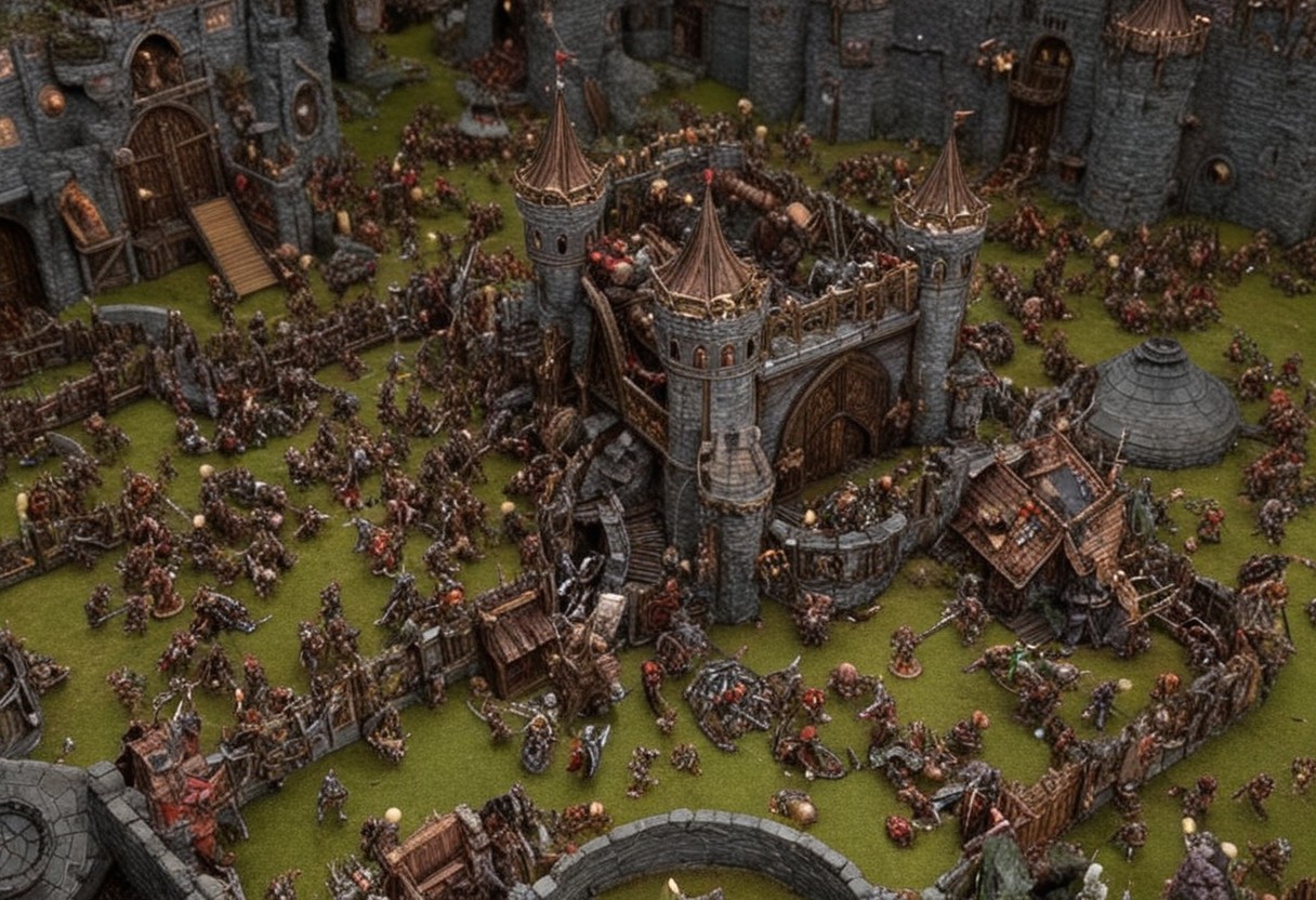 a highly detailed toy land, castle, dwarfes, goblins, fighting, made of l1qu1dp34rl, metal, pearlescent, multicolored <lora:liquidpearlXL:1> score_9, score_8_up, score_7_up, highres, very detailed, amazing quality, high quality photo. 32k, uhd