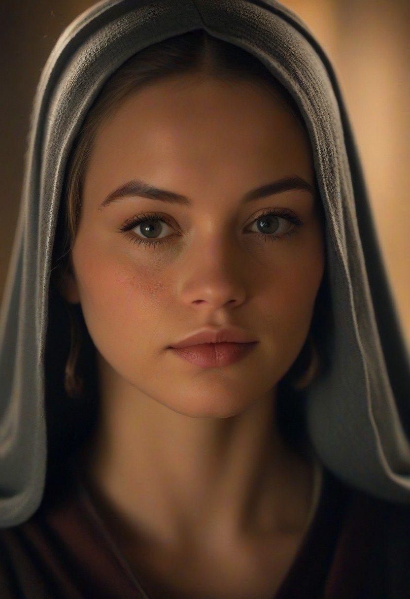 photo of Guin as a medieval peasant girl, (sharp focus:1.2), studio lighting, shallow depth of field, sweet face, shy, cinematic lighting, ((realistic skin texture)), 35mm DSLR photo, bokeh, Guinwen